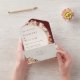 Este menú de otoño con flores de color burdeos, el boda de rsvp, en un solo diseño, es un conjunto de ensueño que encarna la esencia del encanto vintage y la elegancia moderna. Con flores de otoño y hojas en colores otoño, acentuadas con bordes geométricos dorados, nuestro diseño ofrece una estética sencilla pero cautivadora perfecta para su celebración de verano o otoño. En un entorno de color burdeos y beige oscuro, nuestra selección de invitaciones, papelería y decoración exudan calidez y belleza natural, creando un ambiente acogedor para su día especial. Explore la colección hoy y celebre su día de bodas con la belleza del otoño. Para una coordinación personalizada o cualquier pregunta, por favor no dude en ponerse en contacto con nosotros.