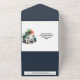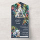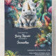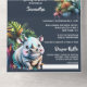 Traiga el arbusto africano a su casa con esta hermosa ilustración acuática inspirada en el safari que presenta adorable rinoceronte de dibujos animados en una jungla rodeada de hojas y palmas otoñales y todo ello sobre un fondo azul oscuro que tiene plantillas de texto blancas personalizables. Ahorre dinero con esta invitación de dos en uno, amigable con el presupuesto, que incluye una tira de rifas de pañales. Los colores son ideales para los niños, los chicas, los gemelos, los trillizos y son adecuados para el zoológico, la jungla, el safari, la ducha con tema tropical y las celebraciones de cumpleaños. Personalice la redacción para que sea única.