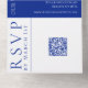 La elegancia combina la comodidad con esta invitación a la boda blanca y azul moderna, con un diseño elegante. Este diseño todo en uno incluye un código QR de personalizable para RSVP en línea. Simplifique los preparativos de su boda y, al mismo tiempo, deje una impresión duradera a sus huéspedes. Aprovecha el romanticismo moderno con esta invitación moderna.