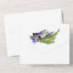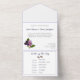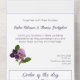 Una elegante gama basada en el diseño floral de Josephine Mary, tonos azules y púrpura con glicinias, violetas y eucalipto sobre un fondo blanco clásico de boda y un tono ciruela intenso que lo complementa.