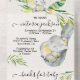 Tan lindo como puede ser Jungle Baby Elephant Baby Shower todo en una sola invitación que incluye la tarjeta "books for baby" o la cambia a más detalles o rifa de pañales. Cuenta con un bebé elefante querido durmiendo en el baúl del elefante madre y otras poses con hojas de palma y helechos. Bueno para cualquier género con colores verdes, grises y amarillos. Hay otros colores de azul o rosa disponibles. Ideal para una ducha de bebé con motivos de jungla, zoológico o safari.