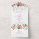 Invitación Todo En Uno Bat Mitzvah Gold Script color de agua rosa floral