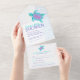 Arte de tortuga ducha de bebé invitaciones de color púrpura acuático con RSVP. Invitación a una pequeña ducha de bebé, con un bonito cuadro acuarela de una extraña tortuga con el corazón en su concha. Ataque acuático con púrpura y ducha de bebé rosa. Personalice los detalles de la ducha de bebé y su dirección para que sus huéspedes envíen sus respuestas. © Únicamente pintado en acuarela y diseñado por Sarah Trett. www.sarahtrett.com para www.mylittleeden.com
