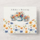 Un bebé está preparando una invitación en Baby Shower pidiendo pañales y libros para el bebé. La invitación incluye detalles de la invitación y un boleto de rifa de pañal para que los huéspedes se rasguen y lleven a su ducha. Debajo de la solapa, hay una dulce y editable solicitud de poema para 'traer un libro en lugar de una tarjeta' e incluso incluye una dirección impresa en la parte delantera. Diseño floral de campo en un fondo amarillo claro neutro, decorado con ilustraciones de una tetera tradicional y tés rebosantes de flores de bonito. Este país de diseño de tetera floral es una maravillosa solución todo en uno para cuando un bebé se está preparando. Ideal para tomar el té de la tarde, fiesta en el jardín y duchas para bebés de temática rústica para un chica o un niño.