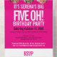 Brillante simple gráfico brillante de color rosa caliente, negro y blanco plantilla de fotos todo en uno 50 cumpleaños invitación. Personalice esta invitación de aniversario desmontable con sus propios detalles de la fiesta de cumpleaños y hasta cuatro fotos diferentes de su chica de cumpleaños. Invitar viene con una simple tarjeta de respuesta desmontable RSVP donde también puedes solicitar una canción para bailar o pedir cualquier requerimiento dietético o especial si es necesario. Sencillos tres círculos de fotos para tu ahora y luego fotos y espacio para tu propia foto en el 0 de 60 en la solapa externa que es de hasta 4 fotos diferentes para que las agregues. Hay otros colores y elementos coincidentes disponibles. © Diseño original de Sarah Trett para www.mylittleeden.com en Zazzle.