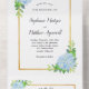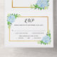 Invitación Todo En Uno Blue Hydrangea Gold Border Boda