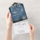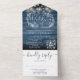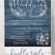 Invitación Todo En Uno Blue Rustic String Lights Mason Jar Floral Boda