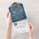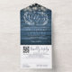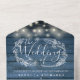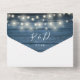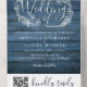 Invitación Todo En Uno Blue Rustic Wood String Lights QR Code Boda