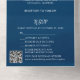 Simplifique su papel boda sin sacrificar el estilo. Esta invitación de boda todo en uno con tonos azules profundos es perfecta para cualquier temporada, especialmente para Navidades/bodas de vacaciones. Combina el encanto rústico con la comodidad moderna, completa con una tarjeta postal RSVP desmontable y un código QR editable para su sitio web, registro o RSVP boda. Esta invitación es totalmente personalizable: cambia el texto, actualiza los tipos de letra y personaliza cada detalle para reflejar su celebración única. Material gráfico creado por Toni. El fondo proviene de una pintura al óleo digital de color azul pálido que da una sensación rica en comparación con un fondo azul estándar.