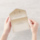 DISPONIBLE CON O SIN CÓDIGO QR PARA ESCALAR. Este diseño sencillo y elegante tiene un aspecto moderno, con dos anillos de boda dorados entrelazados sobre un suave y blanco pardo sobre un fondo de color tostado. Las invitaciones todo en uno personalizadas son una combinación única de una invitación personalizado bien impresa y una postal RSVP fácil de desgarrar. ¡Y son tan fáciles de usar! Simplemente se pliega, después sella la solapa de atrás con los tres pegatinas claros incluidos y el correo. Y cuando sus invitados reciben la invitación de su personalizado, ¡simplemente sacan la tarjeta RSVP perforada y la envían de vuelta al correo!