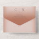 DISPONIBLE CON O SIN CÓDIGO QR PARA ESCALAR. Este diseño sencillo y elegante tiene un aspecto moderno, con dos anillos de boda dorados entrelazados sobre un suave fondo de roya de arcilla suave y blanco. Las invitaciones todo en uno personalizadas son una combinación única de una invitación personalizado bien impresa y una postal RSVP fácil de desgarrar. ¡Y son tan fáciles de usar! Simplemente se pliega, después sella la solapa de atrás con los tres pegatinas claros incluidos y el correo. Y cuando sus invitados reciben la invitación de su personalizado, ¡simplemente sacan la tarjeta RSVP perforada y la envían de vuelta al correo!