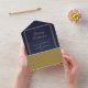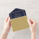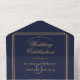 Invitación Todo En Uno Boda Art Deco Azul Y Oro QR Código Navy