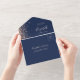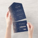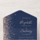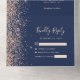 Invitación Todo En Uno Boda azul de la Marina Purpurina Peach moderna