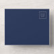 El borde izquierdo de esta elegante y moderna invitación a la boda todo en uno y el RSVP cuenta con un borde purpurina de melocotón. El texto del personalizable combina la escritura manual caprichosa de melocotón, el copperplate y las tipografías cursivas en un fondo azul marino. La dirección de retorno aparece en la solapa exterior y en el reverso de la tarjeta RSVP desmontable en texto de melocotón sobre azul marino sólido.