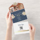 Invitación Todo En Uno Boda azul de la Marina Rustica Floral Terracotta