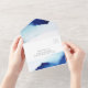 (H) Un elegante acuarela de fondo azul índigo con diseño de escritura moderno es perfecto para un boda contemporáneo elegante. Estas encantadoras invitaciones de Bodas económicas están diseñadas con una tarjeta postal RSVP perforada fácil de romper. Simplemente dobla cada tarjeta en la forma delineada y luego sella y envía - no se necesita ningún sobre para el envío.