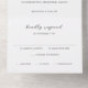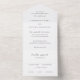 Moderno todo en una sola invitación de boda con un diseño sencillo con serif clásico y elegantes tipos de letra de guión. La tarjeta rsvp adjunta incluye opciones de comida para sus huéspedes.