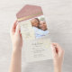Presentamos nuestra impresionante invitación de boda floral neutral rosa polvoriento romántica y chic todo en uno, donde la elegancia se encuentra con el boho chic moderno. Este diseño rústico de rosa polvoriento está bellamente adornado con flores doradas, mezclando perfectamente el encanto atemporal con el estilo contemporáneo. Personalice con las fotos de su pareja favorita, agregue los detalles de la boda, sitio web e información de RSVP para un toque de sofisticación y facilidad. Esta invitación captura sin esfuerzo la esencia de su día especial en un paquete exquisito.