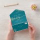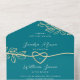 Haz que tu boda sea inolvidable con nuestra invitación de boda bohemio ecológica todo en uno, diseñada para parejas que valoran la sostenibilidad sin sacrificar el estilo. Elaborada con materiales ecológicos, esta invitación combina tonos suaves de marfil y azul turquesa con elegantes acentos dorados y exuberante vegetación, creando una estética serena y terrenal. En el corazón del diseño, un delicado corazón de cuerda dorada simboliza tu amor duradero, mientras que la caligrafía refinada añade un toque de romance.