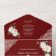 Invitación Todo En Uno Boda Borgoña de flores rosas de la Magnolia blanca