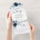 Invitación Todo En Uno Boda botánica de las flores azules agitadas de la
