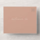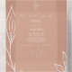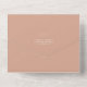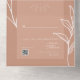 Terracota con texto blanco y arte de la línea botánica. En el exterior se encuentra terracota con dirección de retorno sobre la solapa. Rsvp presenta código qr y formato rsvp tradicional
