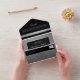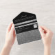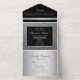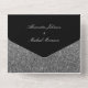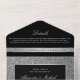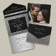 Haga una declaración audaz y elegante con esta invitación de boda negra y plateada. Con detalles de brillo plateado falso, paneles negros clásicos y una solapa de sobre coincidente, esta invitación todo en uno incluye espacio para la información de su boda, sección de RSVP y hasta una foto de la pareja. Perfecta para bodas modernas, de invierno o con tema glamoroso.