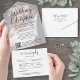 Invite a la familia y a los amigos a una elegante celebración de bodas sólo en recepción con invitaciones en código QR con fotos personalizados. Con este diseño, los huéspedes pueden elegir el método RSVP que prefieran, ya sea con la tradicional tarjeta postal de desgarro para ser enviada por correo, o con el escaneado código que conduce al sitio web del boda. Además, todo el texto es sencillo de personalizar para incluir cualquier detalle de su elección. El moderno diseño de overlay en blanco y negro incluye caligrafía de escritura a mano, tipografía de estilo de máquina de escribir de moda y una foto de la pareja recién casada. (IMAGEN PLACEMENT TIP: Una manera fácil de centrar una foto exactamente como quieres es recortarla antes de subirla al sitio web de Zazzle.) Al escanear el código QR con sus teléfonos, los huéspedes son enviados directamente al sitio web del boda para responder a la invitación. Un proceso rsvp en línea reduce la posibilidad de que las tarjetas se pierdan en el correo. También es más versátil, ya que se puede pedir información más detallada, como opciones de comidas, alergias a alimentos y peticiones de canciones. Toda la información de respuesta se puede personalizar o eliminar. Esta invitación es una manera elegante de pedir a los invitados bodas que respondan amablemente a su próxima celebración del día especial. Ya sea que te fugas, tuviste un pequeño minimo de tamaño reducido o un micro boda, o tu celebración del día especial tuvo que ser reprogramada debido a un aplazamiento de la cómodos pandemia, el felizmente siempre después del fiesta puede empezar. ¡Felicitaciones a la novia y al novio!