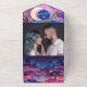 Abraza el encanto celestial con nuestra vibrante invitación de boda bohemio, adornada en ricos tonos de naranja, rosa y azul. Con un monograma romántico en medio de un fondo de lunas y estrellas, esta invitación prepara el escenario para una celebración inolvidable. Completa con un código QR para una respuesta sin esfuerzo, acceso a nuestro sitio web de boda y una encantadora foto de la pareja, promete una experiencia tan única y deslumbrante como el amor que celebra.