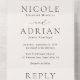 Elegante boda todo en una invitación con fuentes serif tradicionales en un diseño sencillo.