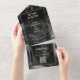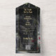 Esta invitación de boda gótica, con una escena floral de rosas en ruinas góticas, se puede personalizar con su información en tipografía elegante. La invitación incluye una tarjeta de RSVP perforada que presenta el código QR del sitio web de su boda y detalles. Diseñado por Thisisnotme©