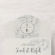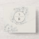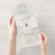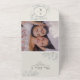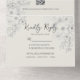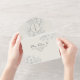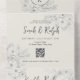 Elegante, moderna, única invitación de boda en negro y blanco con código QR, monograma con encaje floral plateado, letra manuscrita trendy y foto personalizada en la parte trasera.