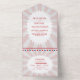 Invitación Todo En Uno Boda con tonos apagados tema retro groovy de los 7