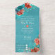 Invitación Todo En Uno Boda coral y floral Verde azulado