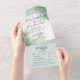 Invitación Todo En Uno Boda de acuarela verde folicular