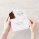 El borde izquierdo de esta elegante invitación de boda moderna todo en uno y la respuesta RSVP presenta un borde de ágata de acuarela marrón mocha recortado con brillo de oro falso. El texto personalizable combina la escritura a mano gris carbón, copperplate y fuentes itálicas sobre un fondo blanco. La dirección de devolución aparece en la solapa exterior y en el reverso de la tarjeta RSVP desmontable.