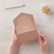 Arco de terracota con texto blanco y línea botánica. En el exterior se encuentra terracota con dirección de retorno sobre la solapa. Rsvp presenta código qr.