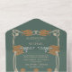 Invitación Todo En Uno Boda de Art Nouveau verde del código QR