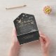 Invitación a la boda moderna con plantilla de postales RSVP desmontable - Elegante guión dorado y frascos de mason de pareja de vintage y luces de cadena en el fondo del tablero negro ondulado. Un diseño perfecto para tu gran día. ¡Todo el estilo de texto, colores, tamaños se pueden modificar para adaptarlo a sus necesidades! Simplemente agregue sus nombres, información del boda, su respuesta por fecha, su elección de comidas y su(s) nombre(s) y dirección(s) de devolución en esta plantilla fácil de usar. Fácil de desechar la tarjeta postal RSVP Perforada. Simplemente Doble cada tarjeta en la forma Borrada, y luego Selle y Envíe, ¡no se necesita ningún sobre para enviarla!