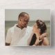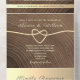 Sencillo, elegante, moderno guión de caligrafía, rústica invitación a la boda todo en uno de madera con un corazón falso de cuerda dorada y una imagen personalizado de la pareja en la parte de atrás. Añade tu foto, detalles del boda y rsvp.