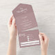 Invitación Todo En Uno boda de caligrafía rosa polvoriento con monograma