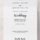 Este sencillo boda de caligrafía, todo en una sola invitación, es perfecto para una boda elegante. El diseño clásico presenta una tipografía rústica en blanco y negro con un toque minimalista moderno.