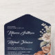 Invitación Todo En Uno Boda de código QR azul de la Marina Floral de Terr