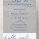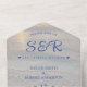 Azul y blanco todo en una invitación a la boda foto de fondo de la playa. Personalízalo con los detalles del evento y el código QR del registro del boda.