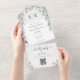 Esta moda floral verde floral floral invitación a la boda todo en uno puede ser personalizada con sus iniciales de monograma e información sobre el día de la boda. La invitación incluye una tarjeta RSVP perforada que incluye el código QR de su sitio web boda. Diseñado por Thisisnotme©