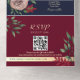 Invitación Todo En Uno Boda de código QR de monograma de Borgoña