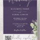 Todo ello en una sola invitación a la boda púrpura con vegetación botánica, hojas rústicas y tipografía elegante. La invitación incluye una tarjeta RSVP perforada con el código QR de su sitio web boda y detalles. Diseñado por Thisisnotme©