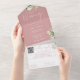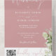 Invitación Todo En Uno Boda de código QR de monograma Rosa de vegetación