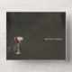 Un boda gótico en una invitación con un par de esqueletos bailando, con la luna llena en la parte de atrás, sobre un fondo negro gris. La tarjeta también incluye opciones de comida para que los huéspedes puedan elegir, y el cliente puede escanear el código a RSVP, o enviar la tarjeta por correo regular. Ideal para un elegante boda gótico de Halloween. En la parte delantera, el diseño incluye un monograma y la fecha de su boda. Siga las instrucciones para personalizar la invitación con los detalles de su boda. Prepare con antelación la redacción en un documento independiente y copie y pegue la información. ætecnolog para los ARTÍCULOS DE COINCIDENCIA, por favor revise mi colección gótica. Para preguntas y pedidos especiales, por favor envíe un mensaje vía Zazzle Chat. Gracias!