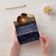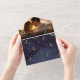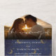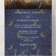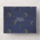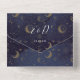 Esta invitación a la boda fotográfica "todo en uno" presenta tipografía elegante sobre el fondo de una luna celeste y estrellas. La invitación incluye una tarjeta RSVP perforada con el código QR de su sitio web boda. Diseñado por Thisisnotme©